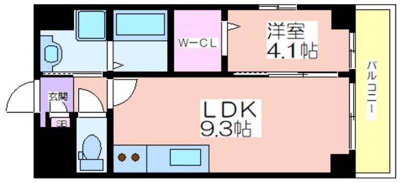 間取り / 広さ 1LDK / 34.03㎡ 所在階数 4階 向き