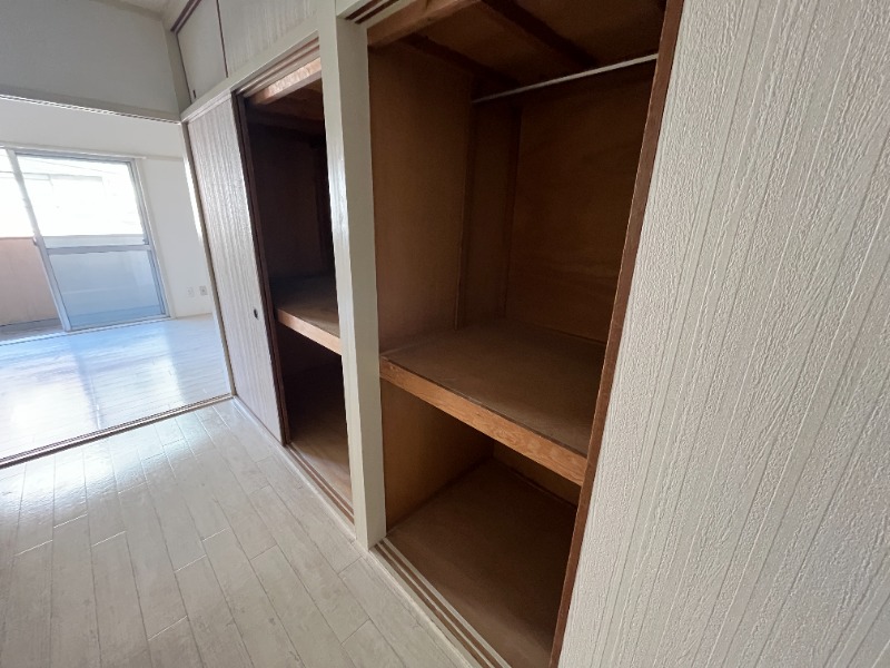 真ん中のお部屋には壁一面に物入有り