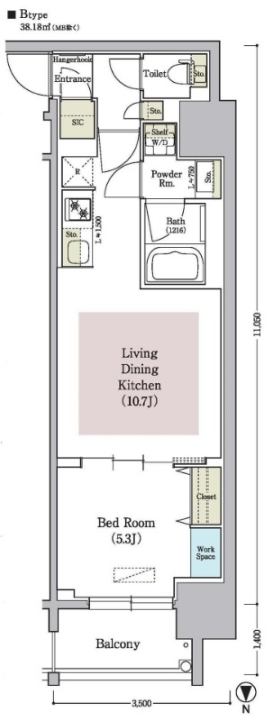 | 間取り / 広さ | 1LDK / 38.18㎡ |