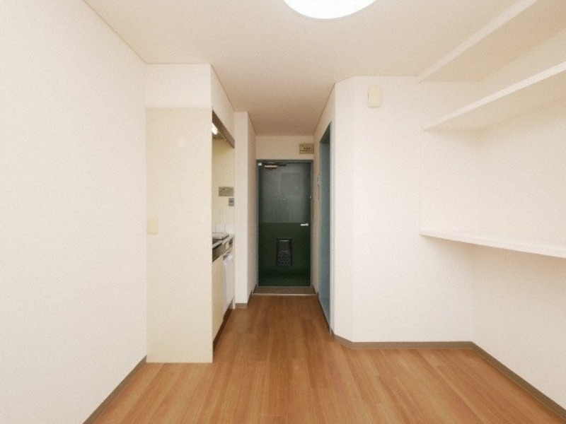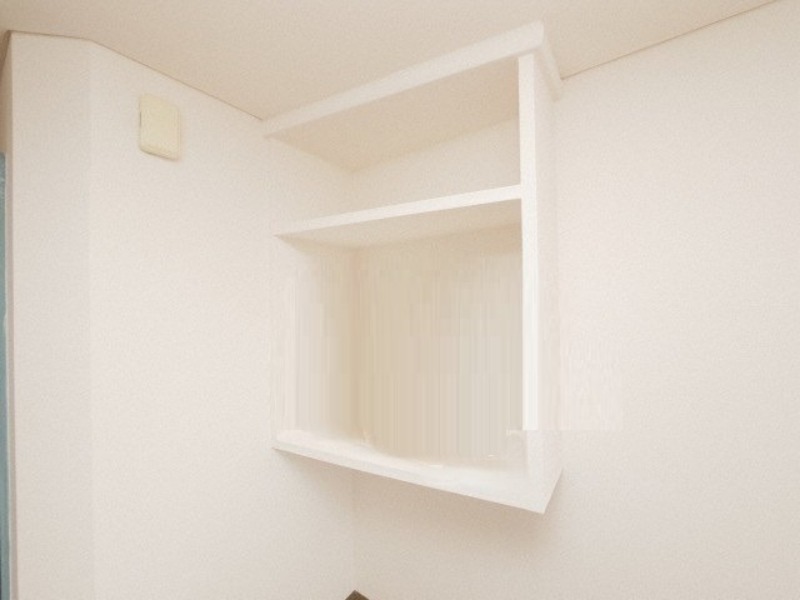 部屋の左手に備え付けの棚もあります。
