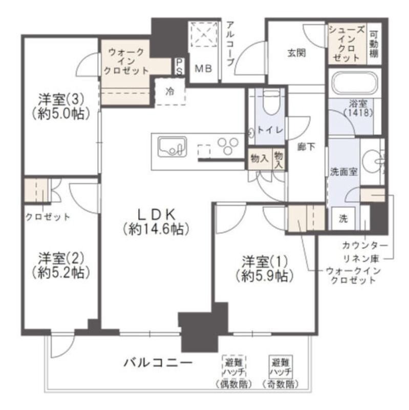 | 敷/礼 | - | 間取り | 3LDK |