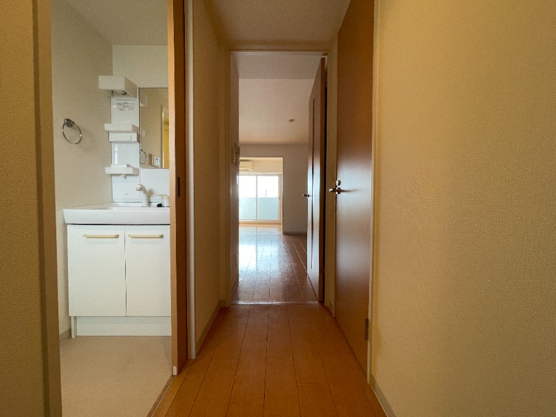 クローゼット、シューズボックス、エアコン、室内洗濯機置き場、バルコニー、フローリング |