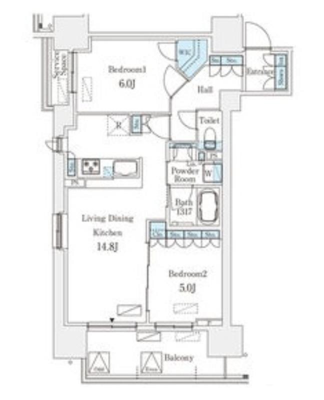 2LDK (59.8㎡) / 14階 |