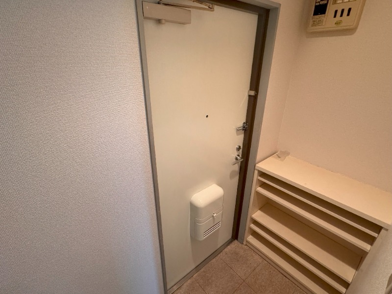 シューズボックス、エアコン、バルコニー、フローリング |