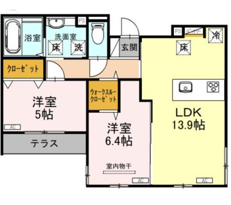 | 敷/礼 | 無料 / 2ヶ月 | 間取り | 2LDK |
