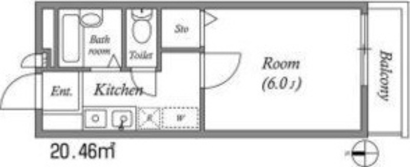 | 間取り / 広さ | 1K / 20.46㎡ |