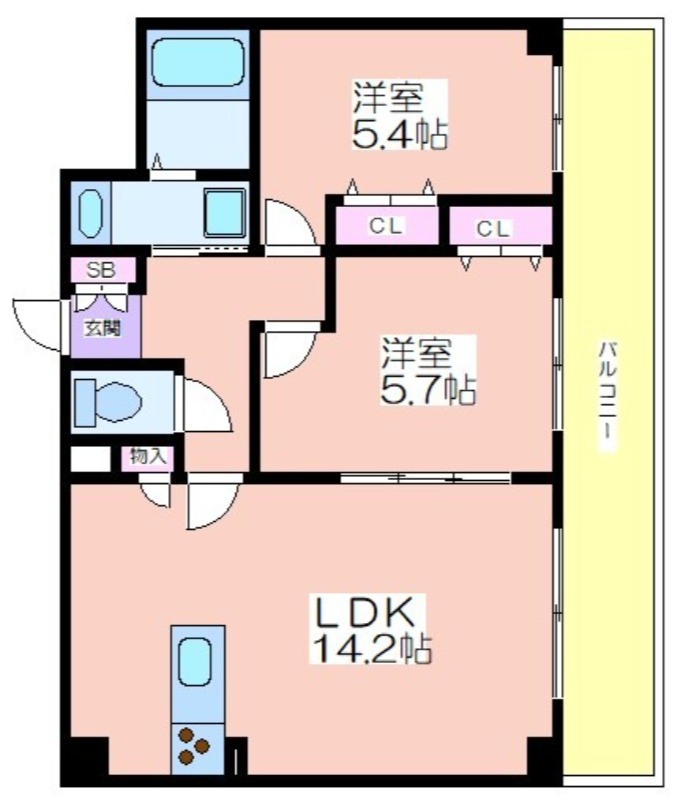 | 間取り / 広さ | 2LDK / 57.65㎡ |