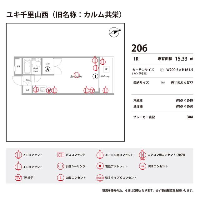 | 間取り / 広さ | 1R / 15.33㎡ |