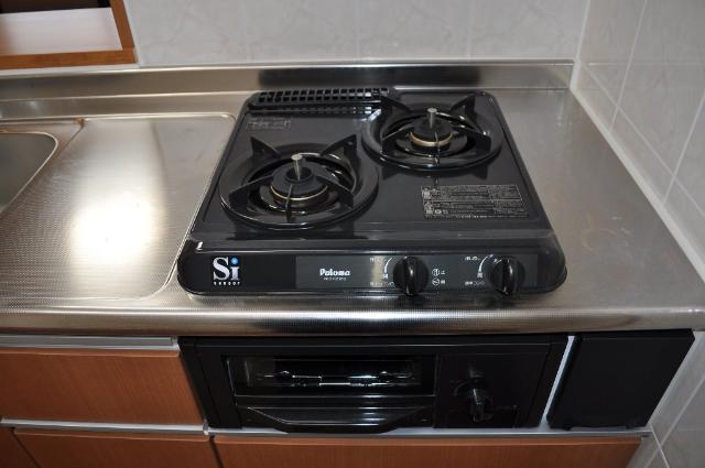 | キッチン/バス・トイレ | システムキッチン、給湯、シャワー付洗面化粧台、温水洗浄便座、カウンターキッチン、浴室乾燥機、洗面所独立、バス・トイレ別、シャワー、ガスコンロ、コンロ(二口) |