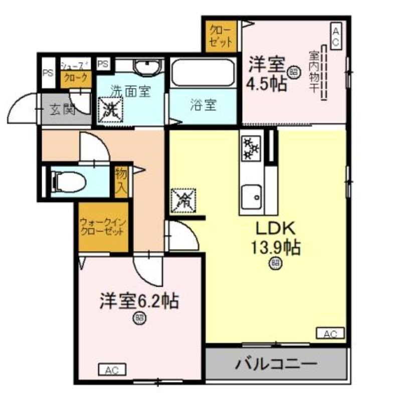 | 間取り / 広さ | 2LDK / 59.75㎡ |