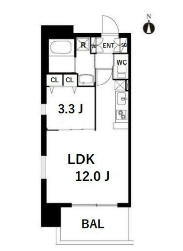 1LDK (33.64㎡) / 12階
