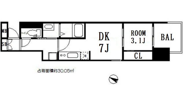 | 間取り / 広さ | 1DK / 30.05㎡ |