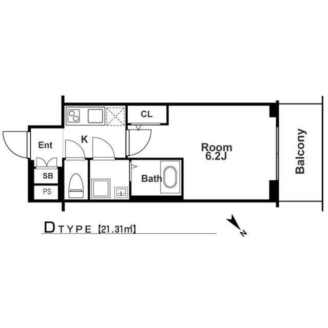 | 間取り / 広さ | 1K / 21.31㎡ | 所在階数 | 5階 | 向き | 北 |