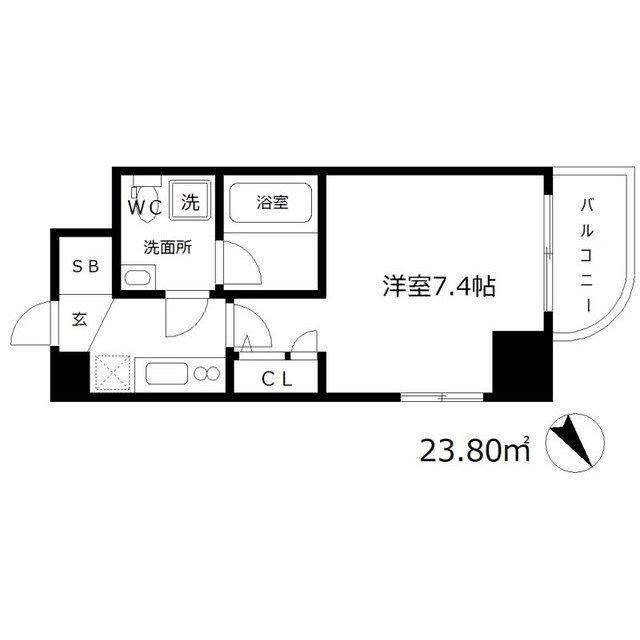 | 間取り / 広さ | 1K / 23.8㎡ | 所在階数 | 7階 | 向き | 西 |