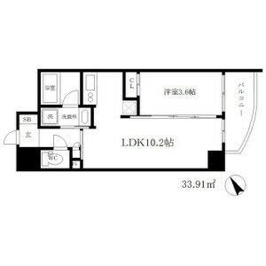 | 間取り / 広さ | 1LDK / 33.91㎡ | 所在階数 | 6階 | 向き | 東 |