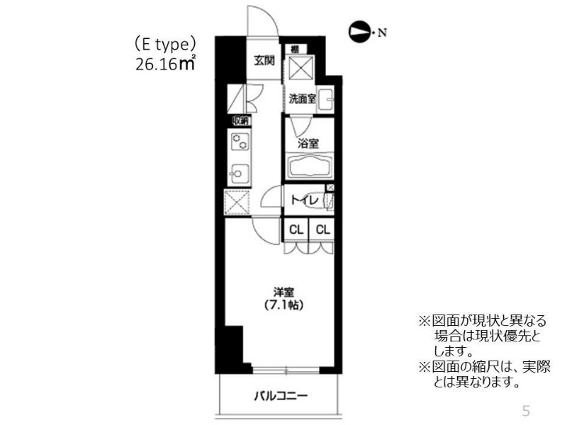 1K (26.16㎡) / 5階 |