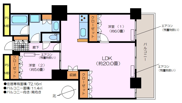 | 間取り / 広さ | 2LDK / 72.16㎡ |