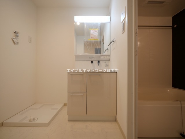 左手には清潔感のある洗面所があります。