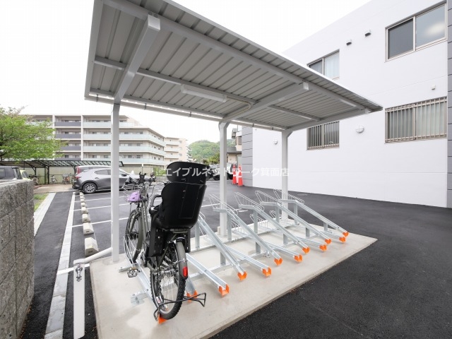 建物の外には屋根付きの駐輪スペースがあります。