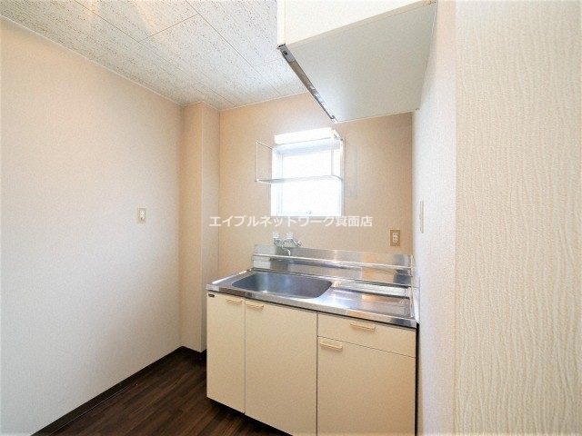 こちらのお部屋のキッチンは、窓が近くにあるため明るく開放的。