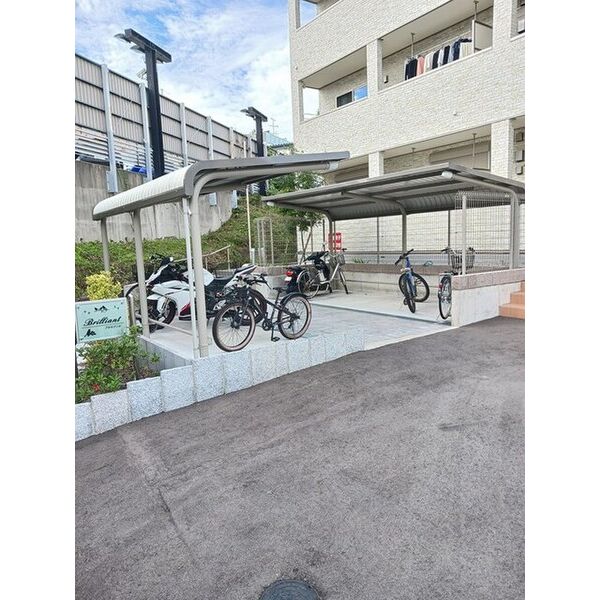 敷地内に入ると屋根付きの大きなサイクルポート