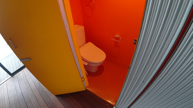 ここには先ほどのオーニングテントのような、そう くるくる回すと下りてくる青いテントがついていて外部からの目線をシャットアウトできます