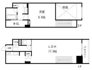| 部屋設備 | メゾネットデザイナーズフローリング照明器具床暖房バルコニーTVインターホンオール洋室コンロ設置済ガスコンロコンロ2口システムキッチン冷蔵庫置き場調理作業スペースシャワーガス給湯器洗面化粧台シャンプードレッサー室内洗濯機置場ウォシュレットウォームレット洋式トイレエアコンクローゼットシューズボックス二人入居可 | ||||