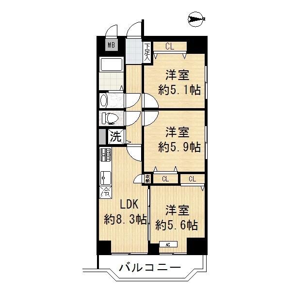 | 間取り | 3DK 専有面積:60.48m2 18.29坪 |