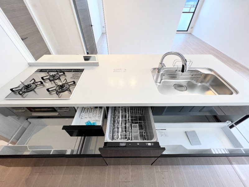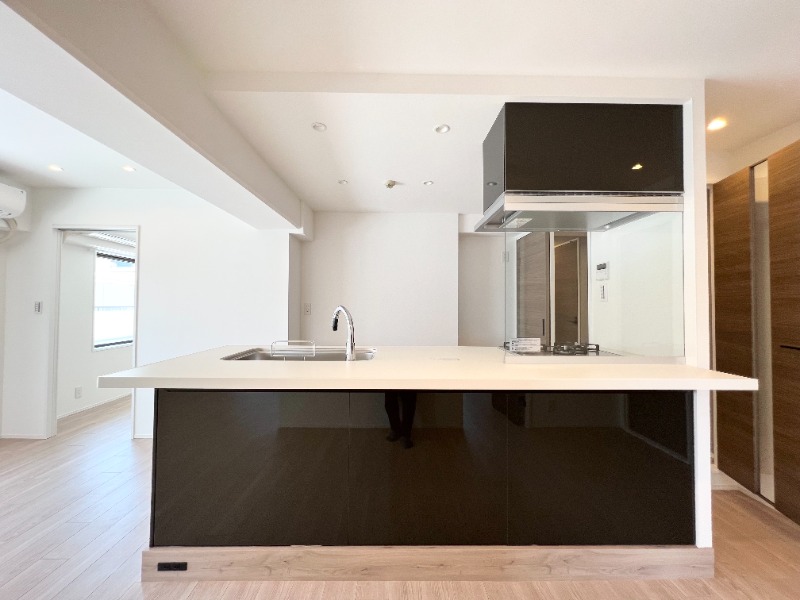二人入居可、システムキッチン、給湯、追焚機能、ウォークインクローゼット、BSアンテナ、駐輪場あり、角部屋、温水洗浄便座、カウンターキッチン、浴室乾燥機、洗面所独立、食器洗い乾燥機、全居室収納、クローゼット、シューズボックス、照明器具付き、オートバス、保証人不要、水道(公営)、ガス(都市)、排水(下水)、バス専用、バス・トイレ別、シャワー、ガスコンロ、コンロ(三口)、エアコン、室内洗濯機置き場、オートロック、エレベータ有、バルコニー、フローリング、TVドアホン、インターネット使用料無料、リノベーション