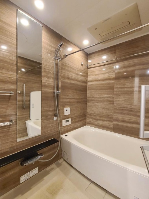 二人入居可、分譲賃貸、システムキッチン、給湯、追焚機能、宅配ボックス、温水洗浄便座、浴室乾燥機、洗面所独立、食器洗い乾燥機、防犯カメラ、クローゼット、シューズボックス、水道(公営)、ガス(都市)、排水(下水)、バス専用、バス・トイレ別、シャワー、ガスコンロ、コンロ(三口)、エアコン、室内洗濯機置き場、オートロック、バルコニー、フローリング、TVドアホン、制震構造