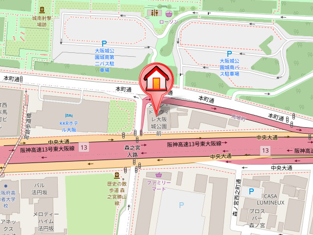| 交通 | 大阪市営地下鉄中央線「森ノ宮駅」徒歩5分 大阪市営地下鉄長堀鶴見緑地線「森ノ宮駅」徒歩7分 大阪市営地下鉄谷町線「谷町六丁目駅」徒歩7分 |